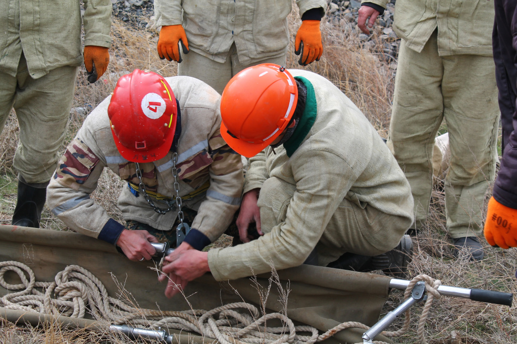 Кранның тросы карьердің түбіне жете алмағандықтан бөлімше командирлері Ш.Дәужігітов және Б.Маналиев, құтқарушы У.Шонабаев карьердің түбіне түсіп мәйітті алып шығу үшін биіктікте жұмыс жасай алатын құралға құтқару арқанын байлап, карьердің түбіне түсіп мәйіт қабына орап, медициналық көтергішке салып жоғары алып шықты.